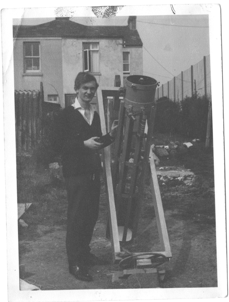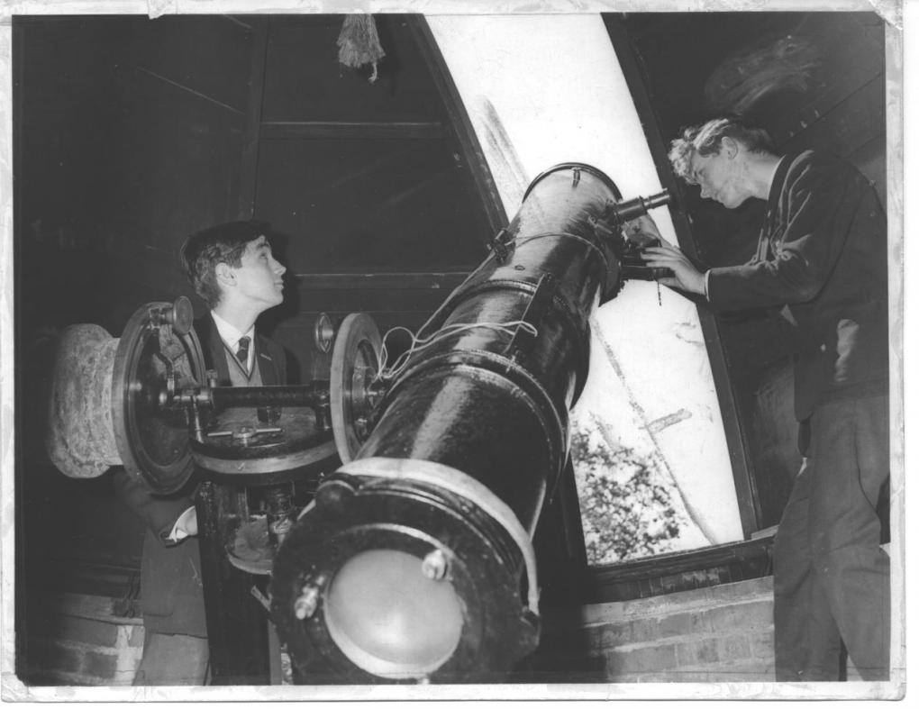I attended Widey Technical School at Crownhill in Plymouth between 1958 (when it was based in Armada Street as the Junior Tech) and 1964 (by which time it had transferred to a new school). During these years I discovered an ancient telescope (10-inches diameter) in the school loft, complete with optics. Following discussion with the headmaster (Mr Edgar Harris) the telescope was transferred manually to a tiny observatory hastily built in the school grounds to impress a visiting government minister. (Isn’t it strange, the things you remember!) After much hassle I was able to get the telescope operational after the headmaster had (apparently) paid for the silvering of the mirror. I organised an astronomy club for the school and we met each week. I wrote to Patrick Moore for advice about becoming a professional astronomer and he subsequently visited me at home for a chat. We also drove to the school observatory.